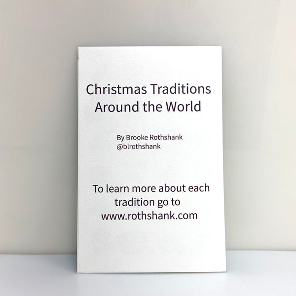 The theme is Christmas Traditions Around the World. Behind each door is the name of a country and a tiny picture of one of their Christmas Traditions to encourage curiosity for our fellow humans. A fun way to learn about our neighbors around the world!
