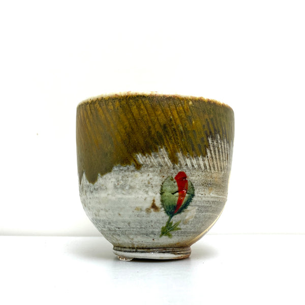 Years ago I gave a batch of cups to Liz Pechacek to experiment with. The results are in! I threw these cups, Liz and some of her surface design treatments, and they were fired in the very first firing of my brand new wood kiln. Afterwards, I added some more decals. These are definitely one of a kind!