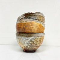 This is a soda fired bowl. Earthenware clay, porcelain slip, glossy liner glaze. Each bowl is unique, the soda firing process allows for varying surface results. You’ll get a bowl similar but not identical to what is pictured.