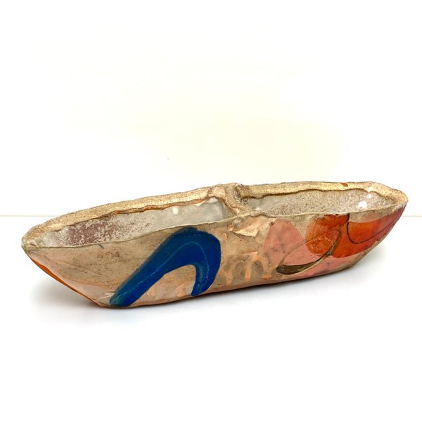 This is a wood fired stoneware tray. This piece was fired for 30 hours using native hardwoods collected from the land where I live.