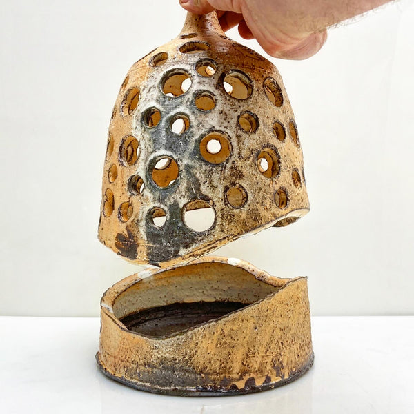 This is an earthenware lantern. Soda fired with porcelain slip.
